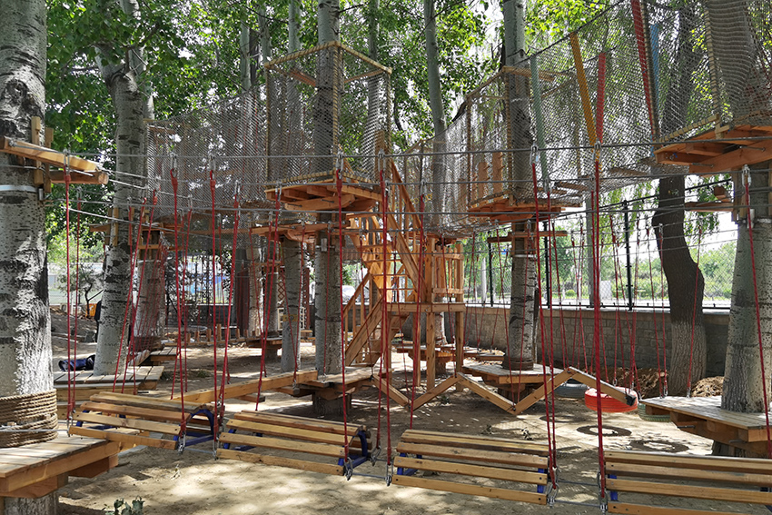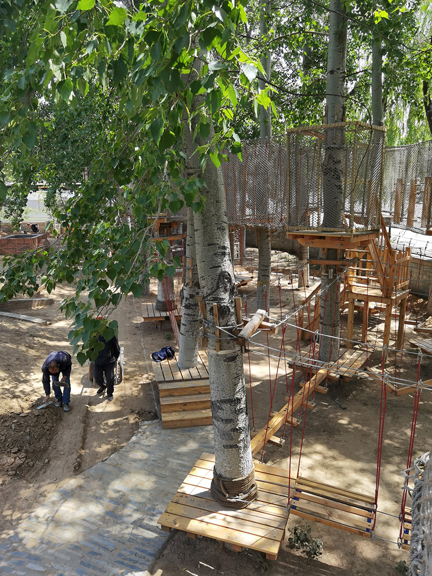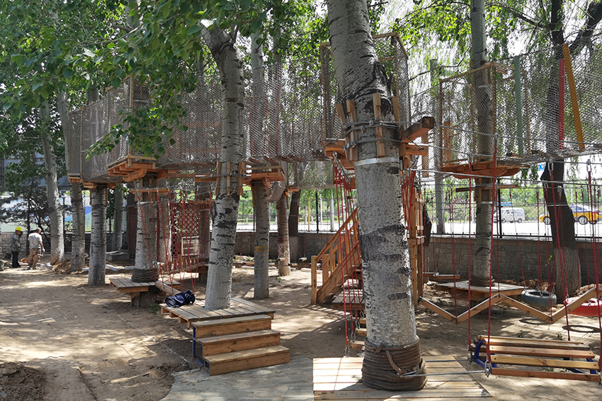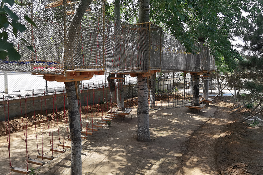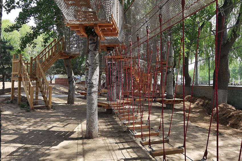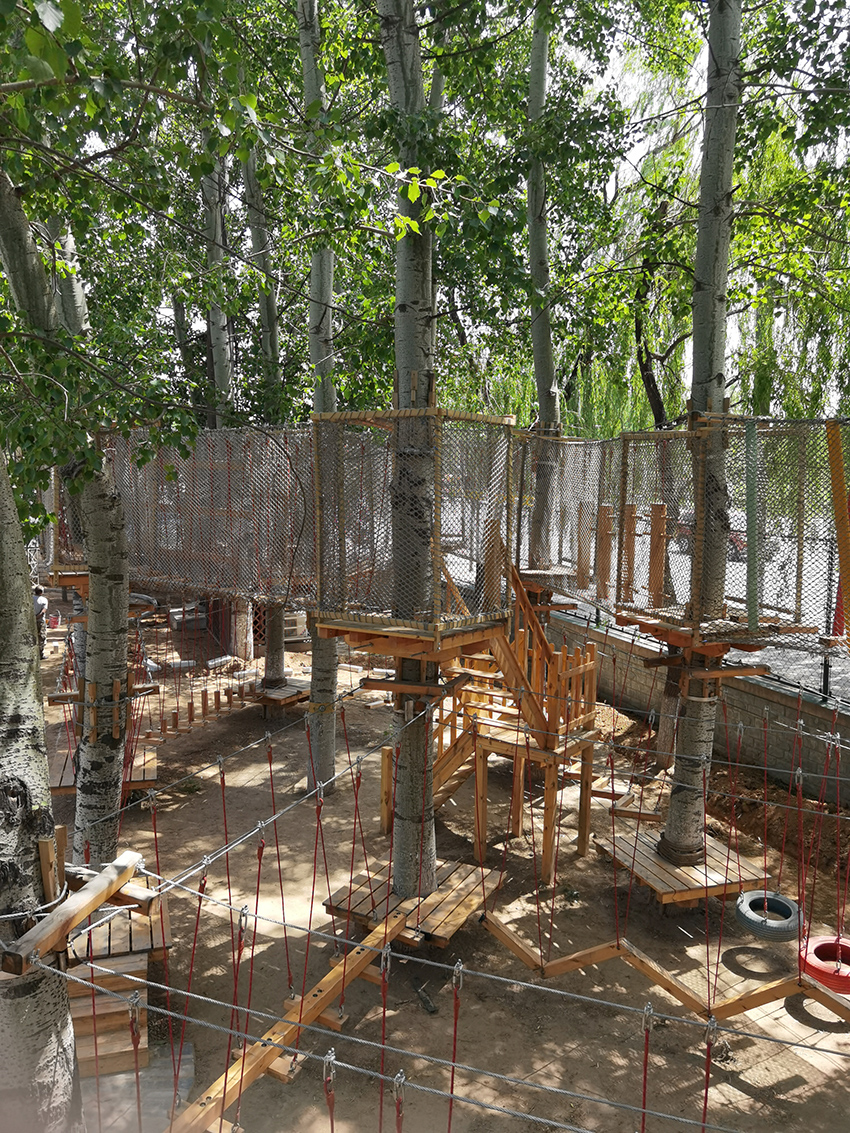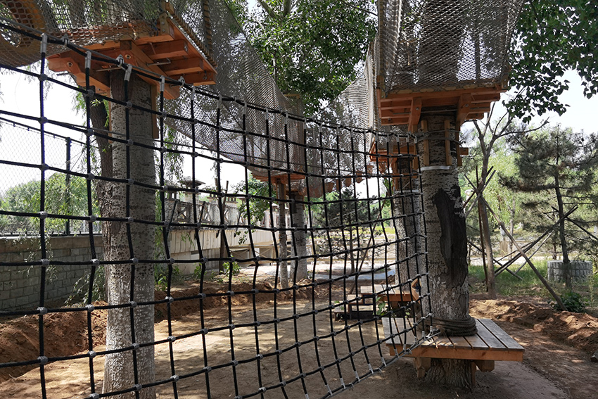 下面是拓展區,適合孩子體能訓練,有繩網的保護,高空行走也很安全。